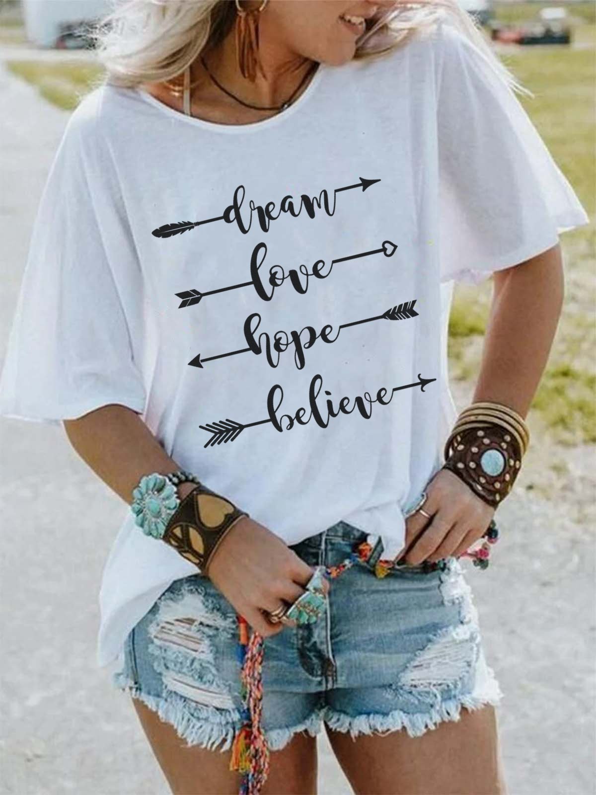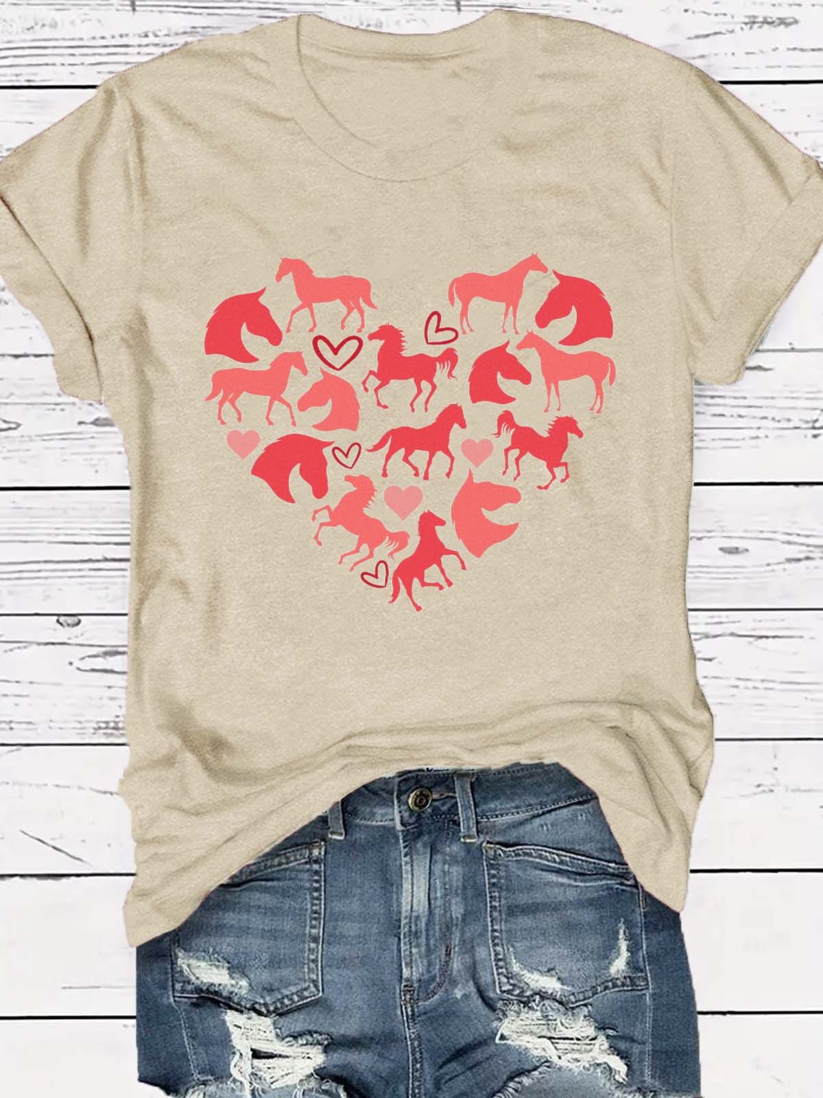 Western Style Round Neck Colored Cotton Short Sleeve T-Shirt