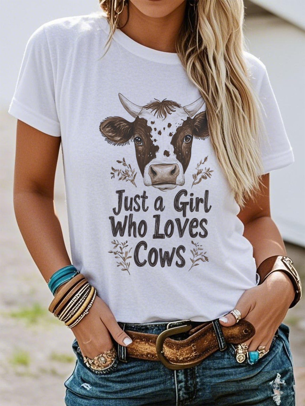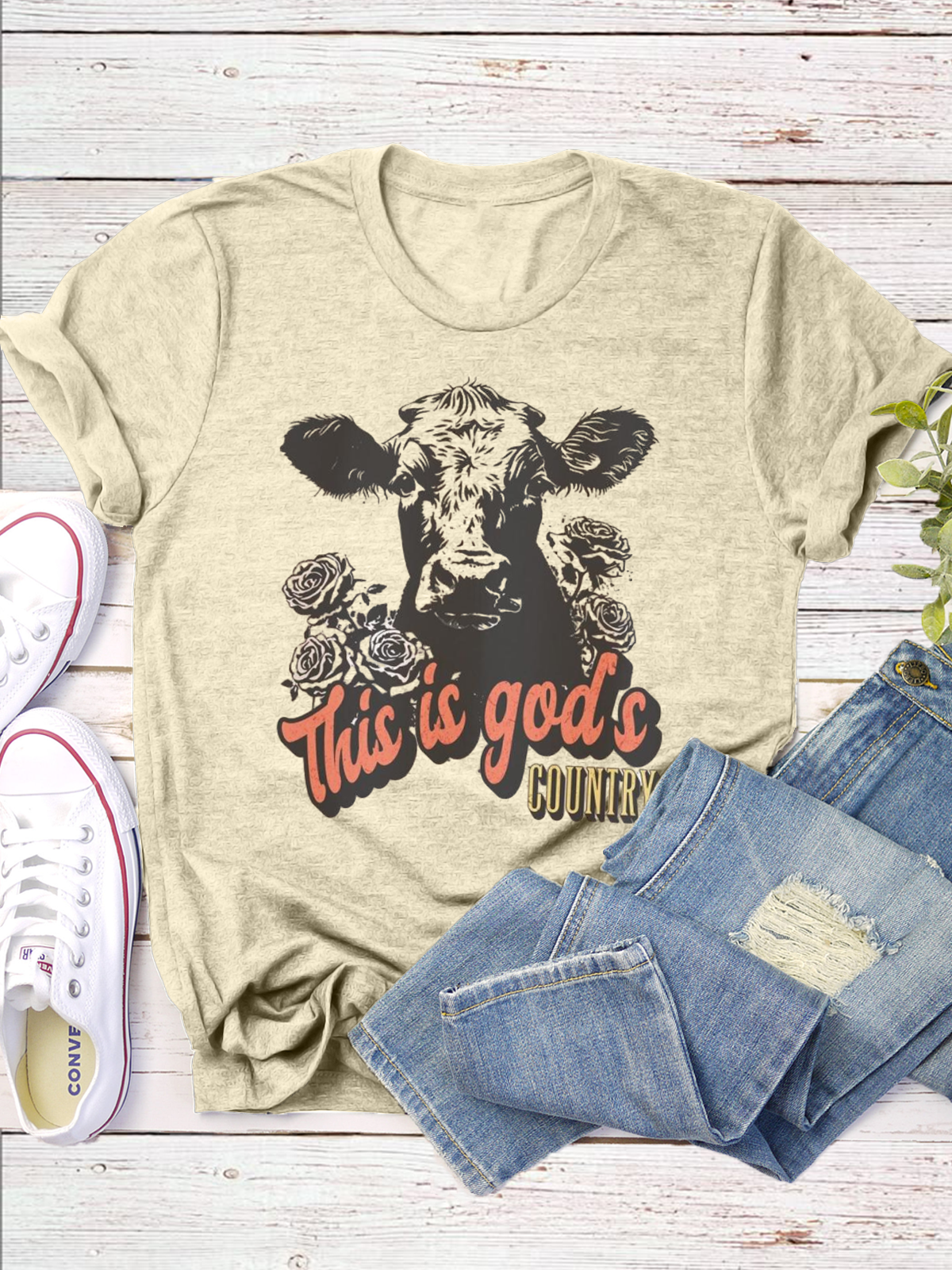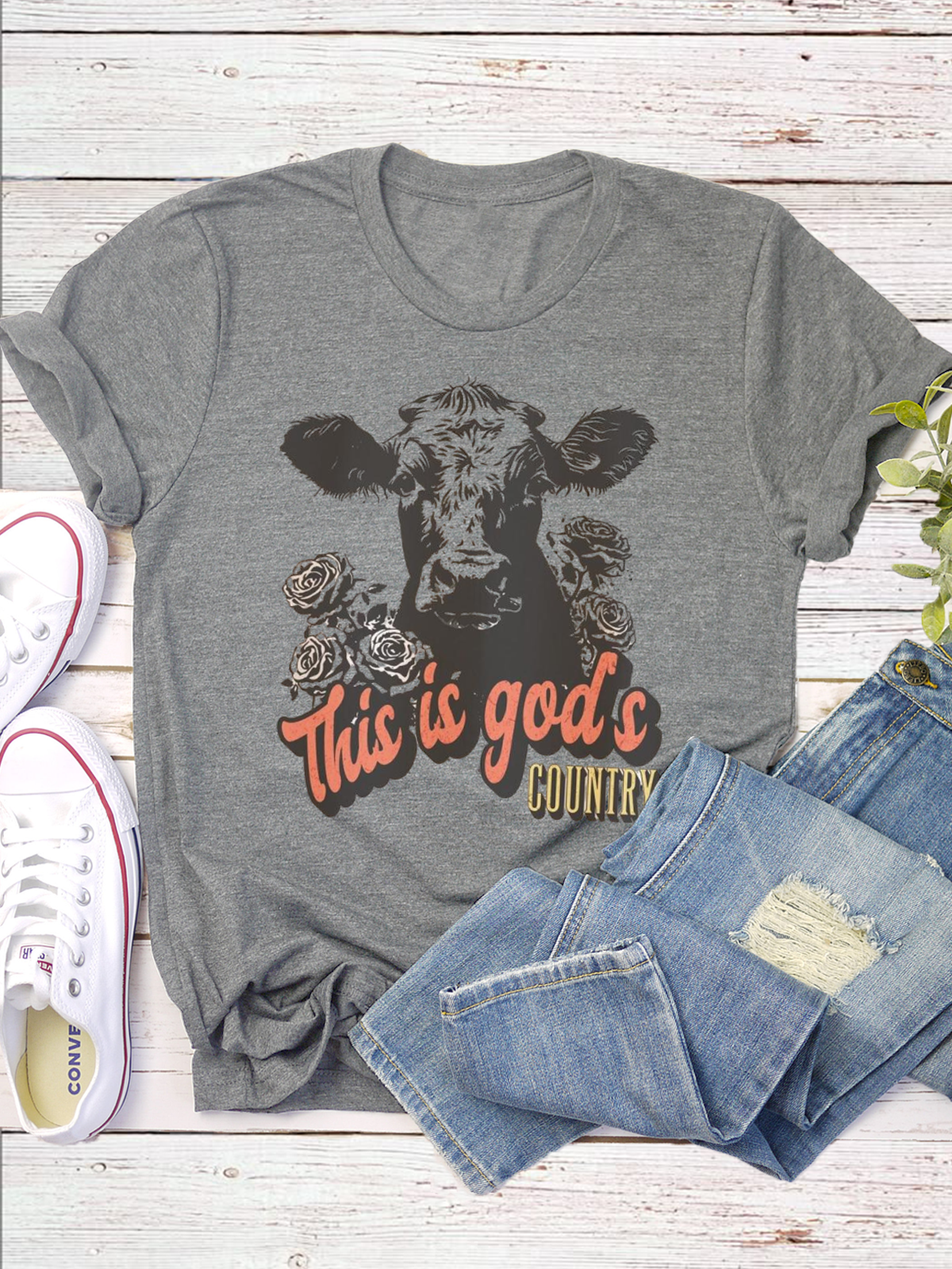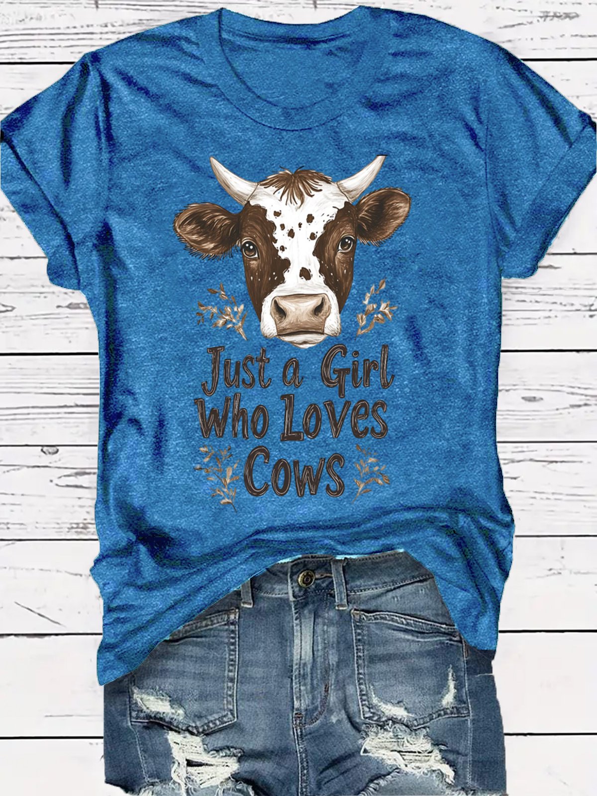Western Style Round Neck Colored Cotton Short Sleeve T-Shirt