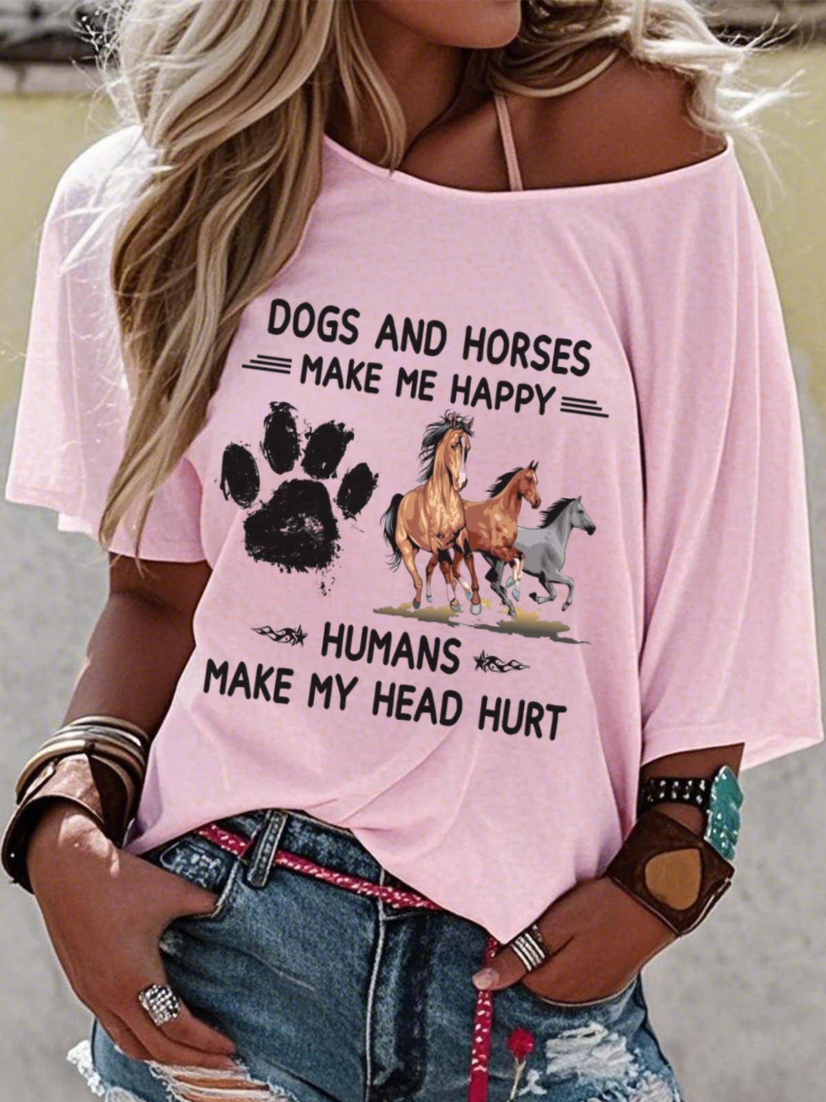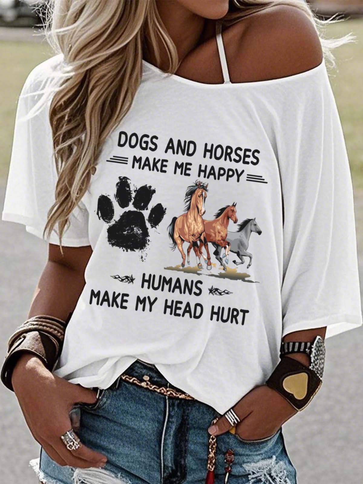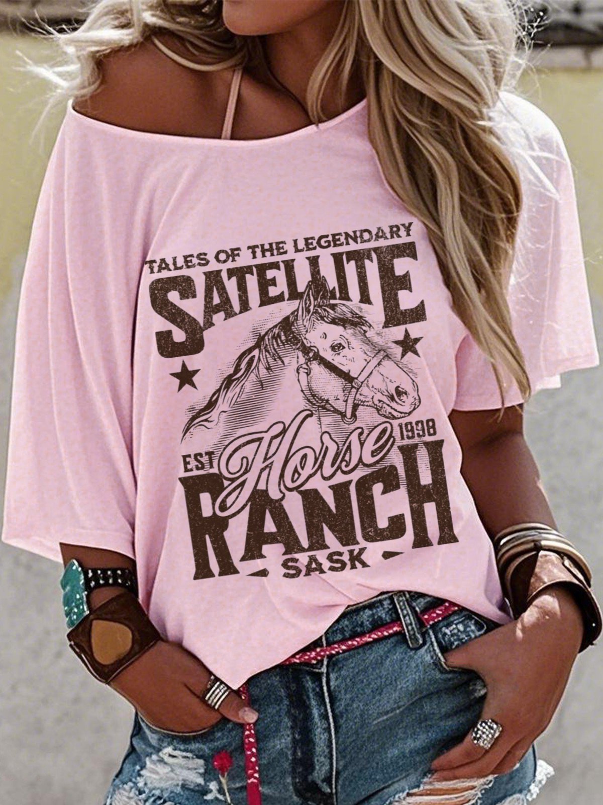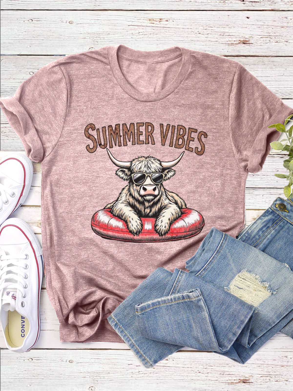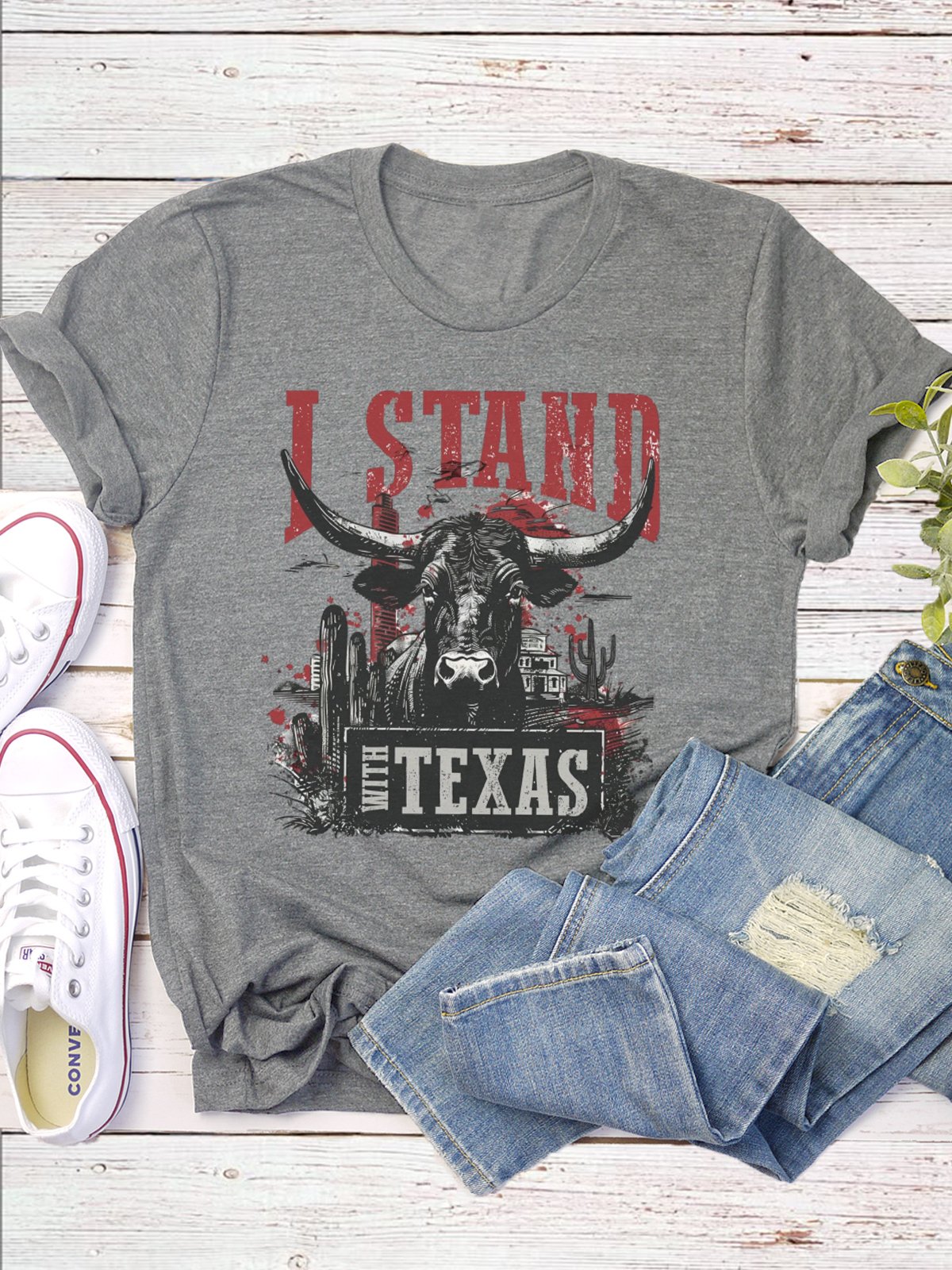 Western Style Round Neck Colored Cotton Short Sleeve T-Shirt