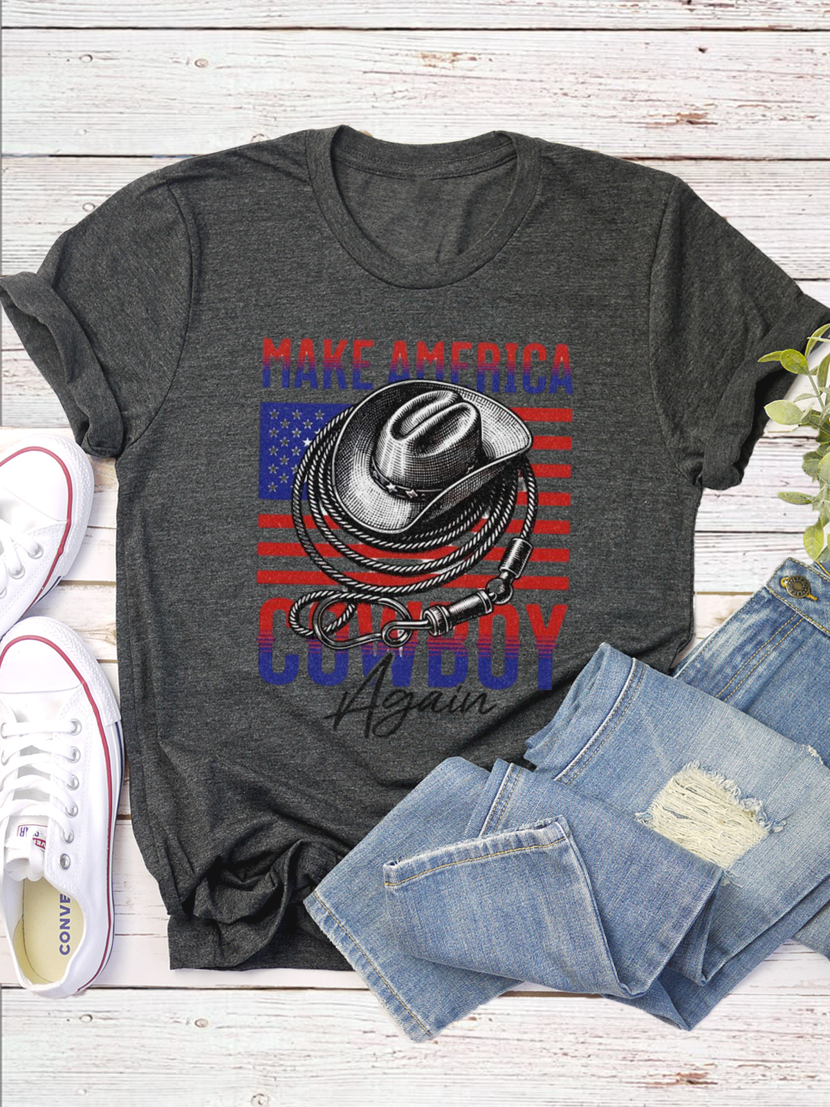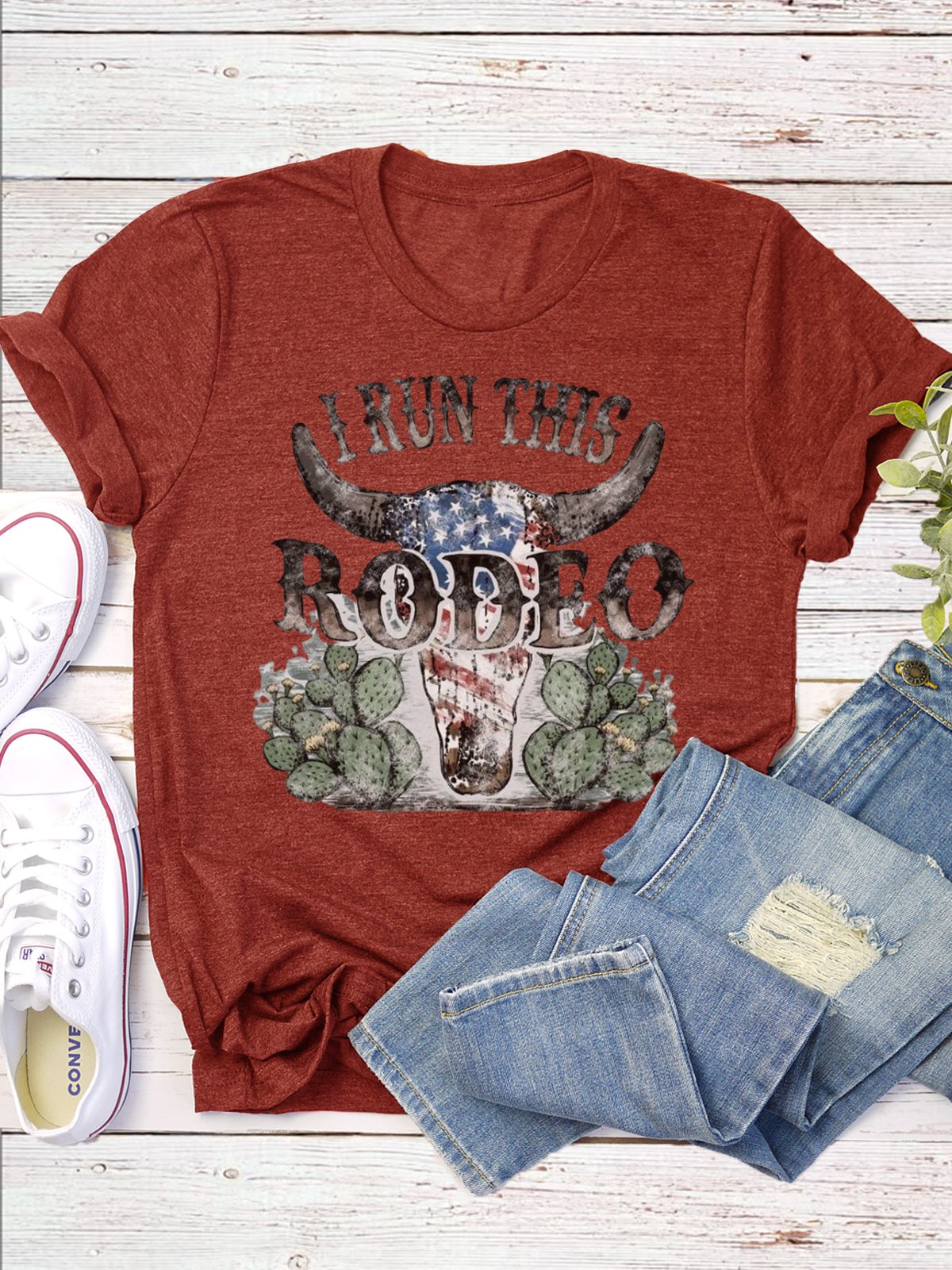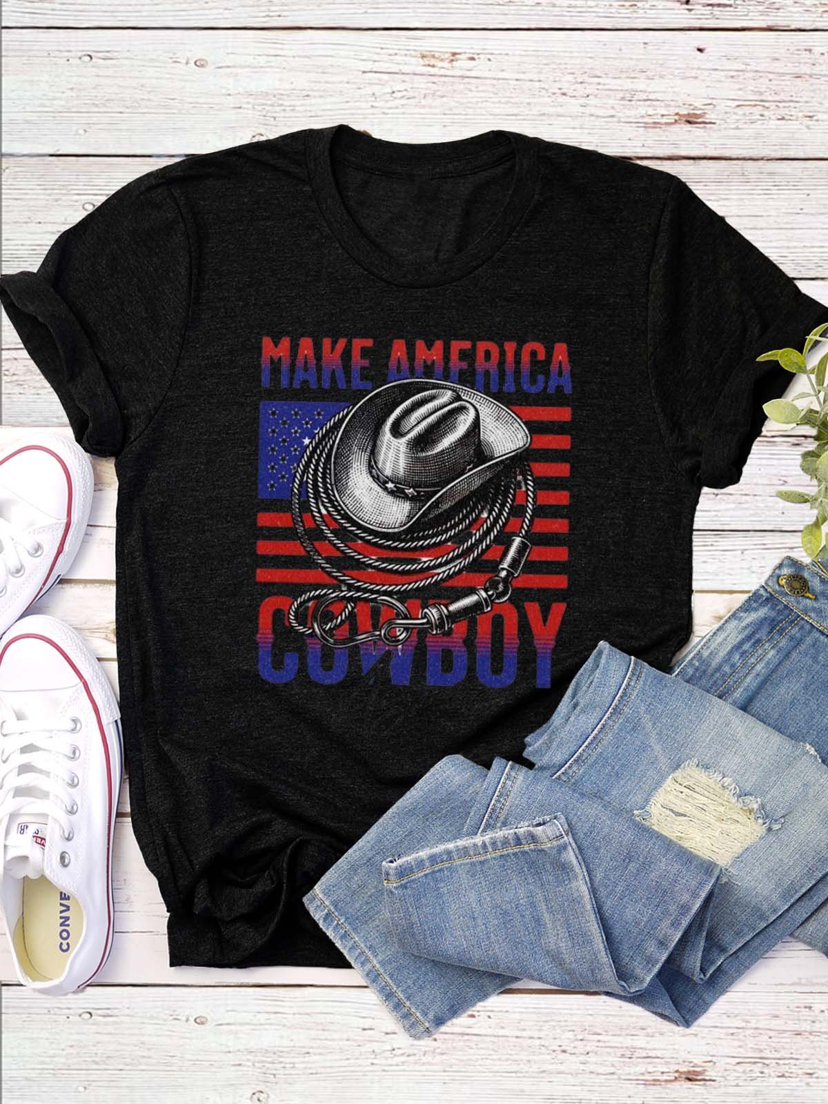 Western Style Round Neck Colored Cotton Short Sleeve T-Shirt