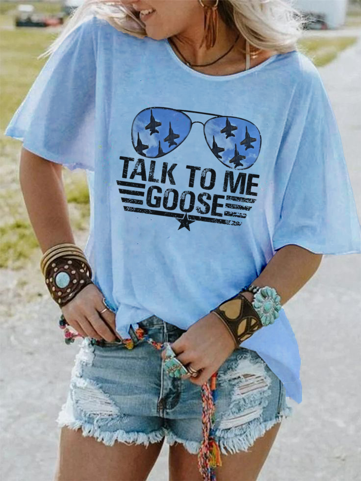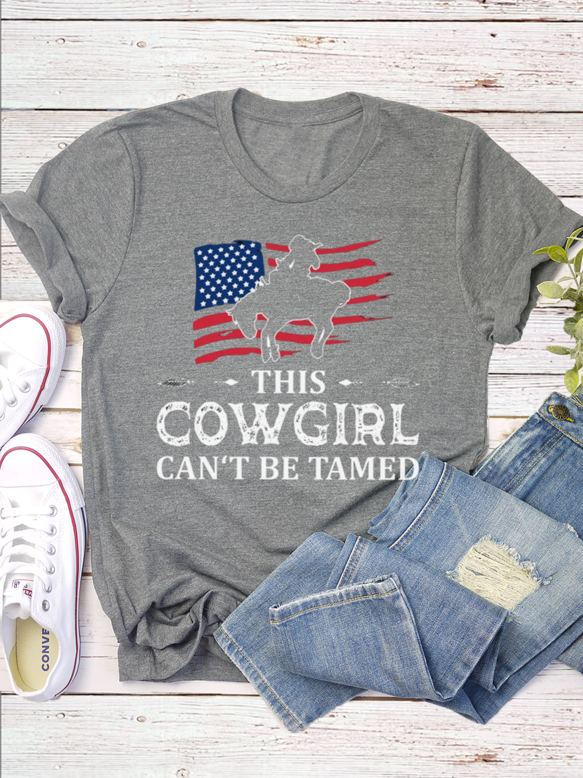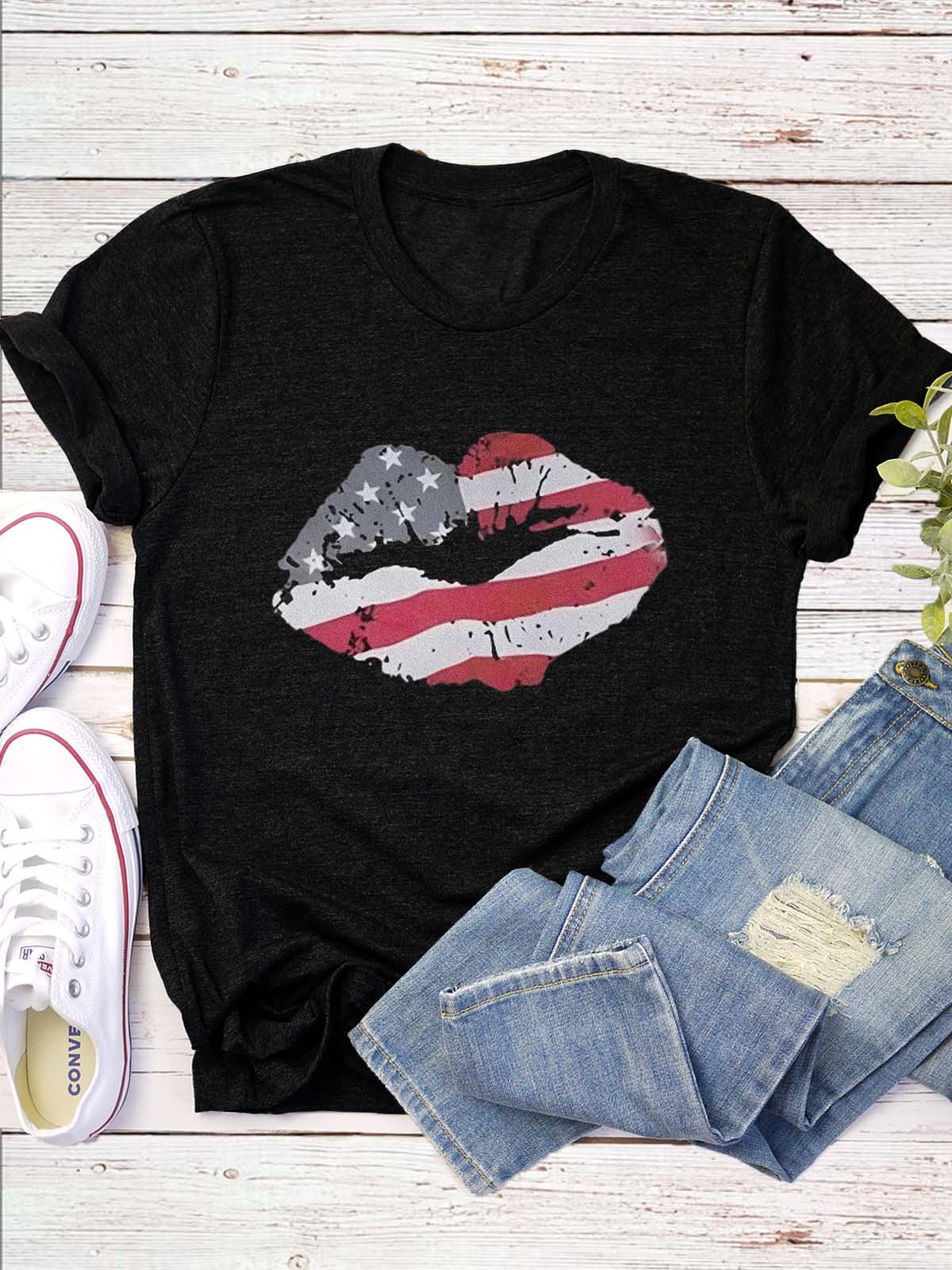 Western Style Round Neck Colored Cotton Short Sleeve T-Shirt